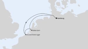 Reiseroute: Hamburg - Brüssel/Zeebrügge - Rotterdam - Hamburg